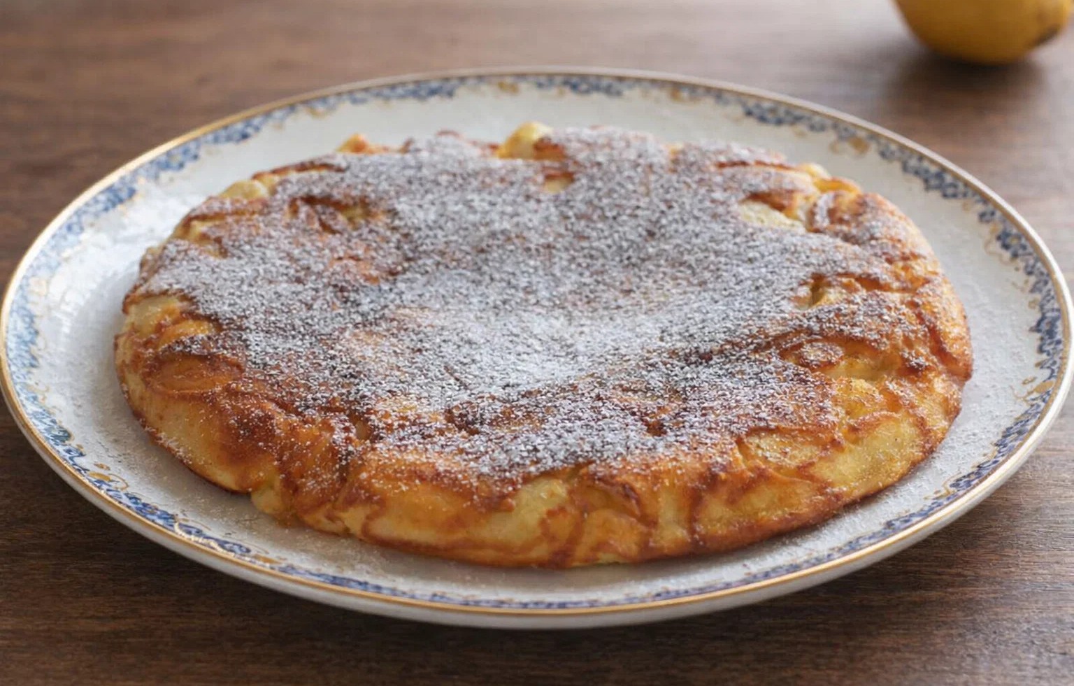 Une fois cuit, décollez avec une spatule, puis retournez-le dans un plat côté pommes.