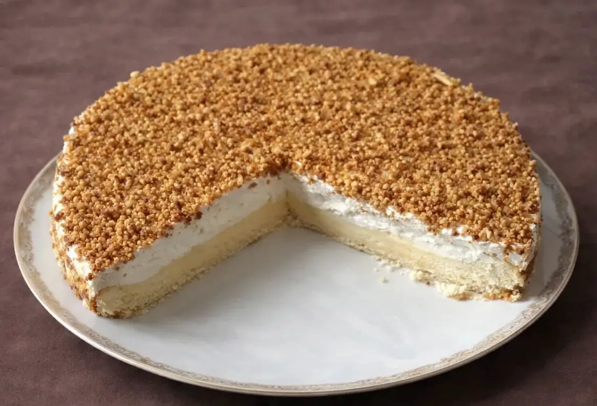 La véritable tarte brésilienne est une spécialité de Belgique. Une tarte sur un fond de pâte levée avec une couche de crème pâtissière, recouverte d’une chantilly et parsemé de noisette torréfiées caramélisées et mixées (brésilienne)